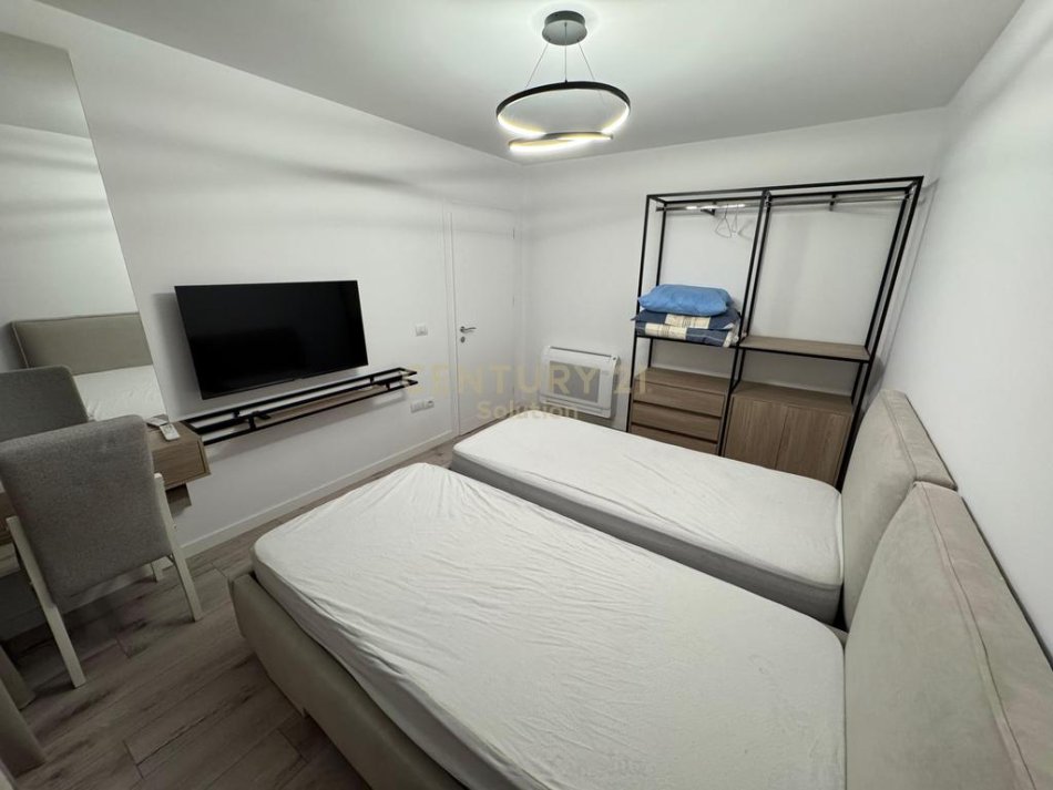 Apartamenti organizohet nga nje korridor shperndares, ambienti i ndenjes sebashku me ambientin e gatimit , dy dhoma gjumi dhe nje tualet.
