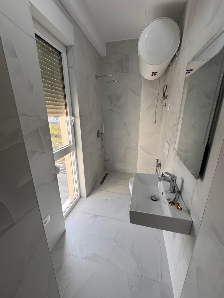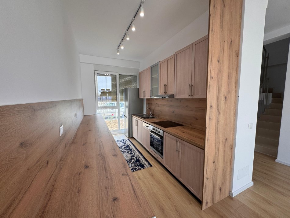 Perbehet nga 3 dhoma gjumi, 4 tualete, ambient ndenje dhe kuzhine, 2 poste parkimi ne garazh dhe nje oborr te vogel