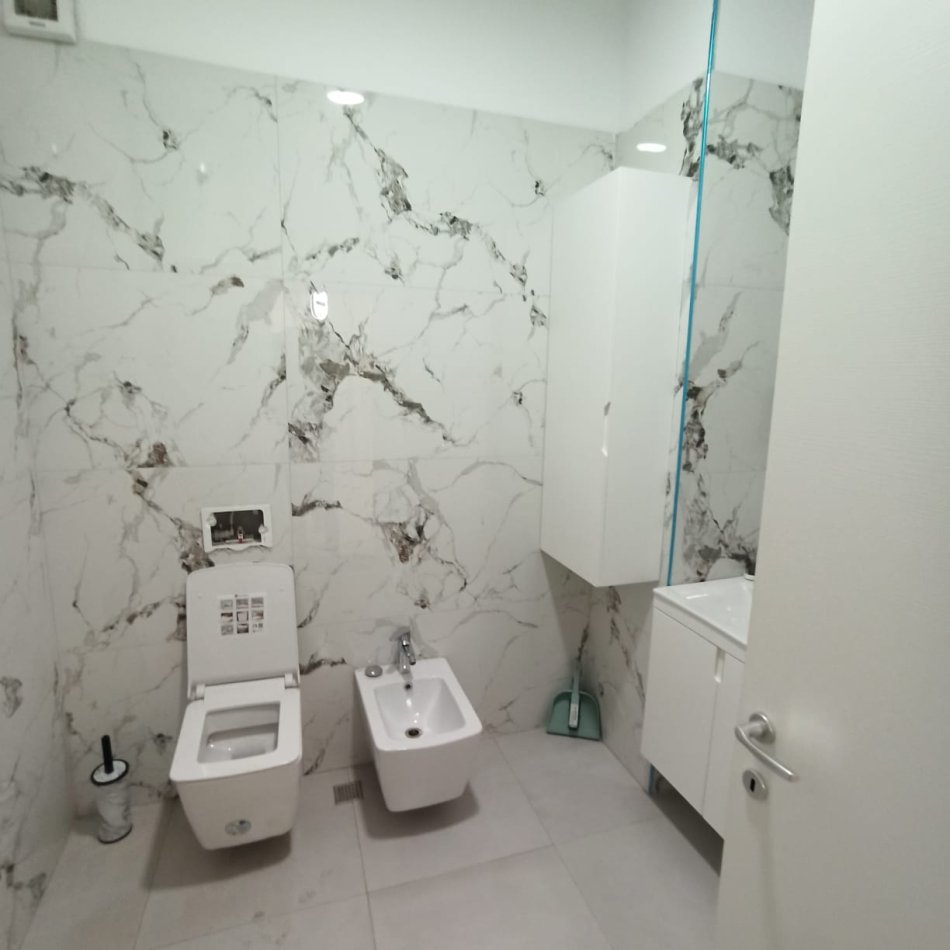 Apartamenti eshte totalisht i mobiluar dhe i pajisur me kondicioner. Organizohet 1dhome ndenje-ngrenie-gatim, 2dhoma gjumi, 1tualet dhe 1ballkon. Cmimi 500€/muaj