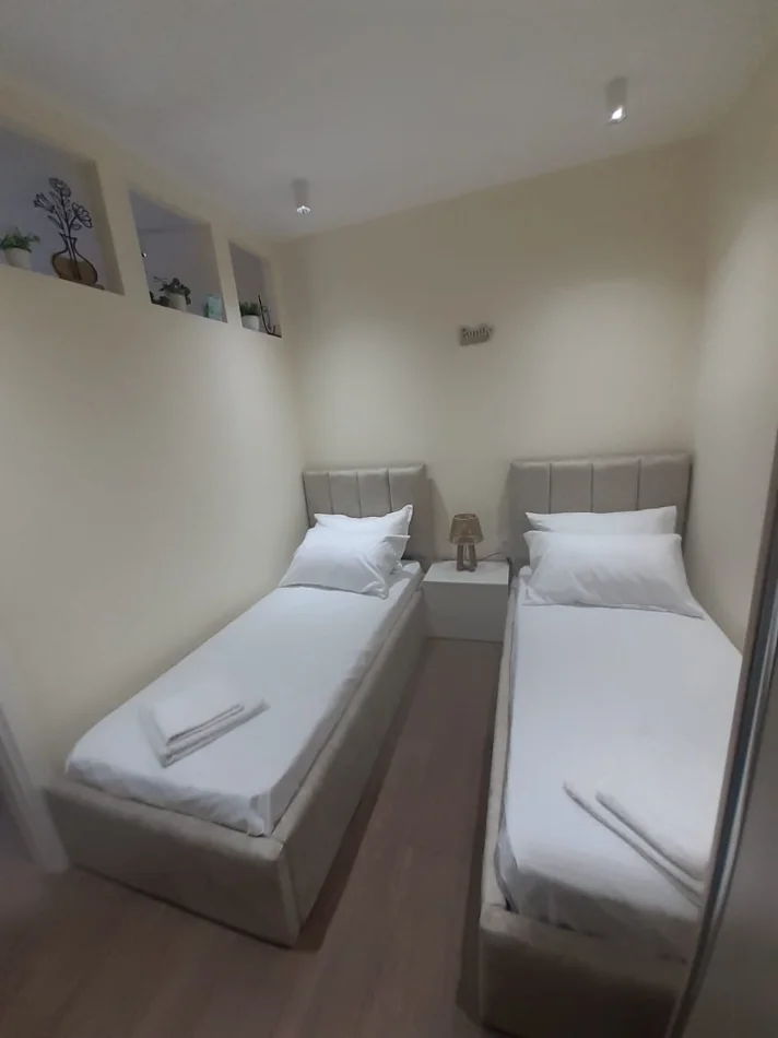 Apartament modern, ndriçim natyral gjatë gjithë ditës, ndodhet në një pallat të ri dhe mirëadministruar.