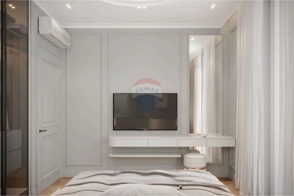 Apartamenti karakterizohet nga planimetri e rregullt, hapësira të mëdha xhami dhe lidhje perfekte mes ambienteve të brendshme dhe dritës natyrale. Arredimi i ri e kthen në një banesë gati për jetesë luksoze, pa nevojë për investime shtesë.